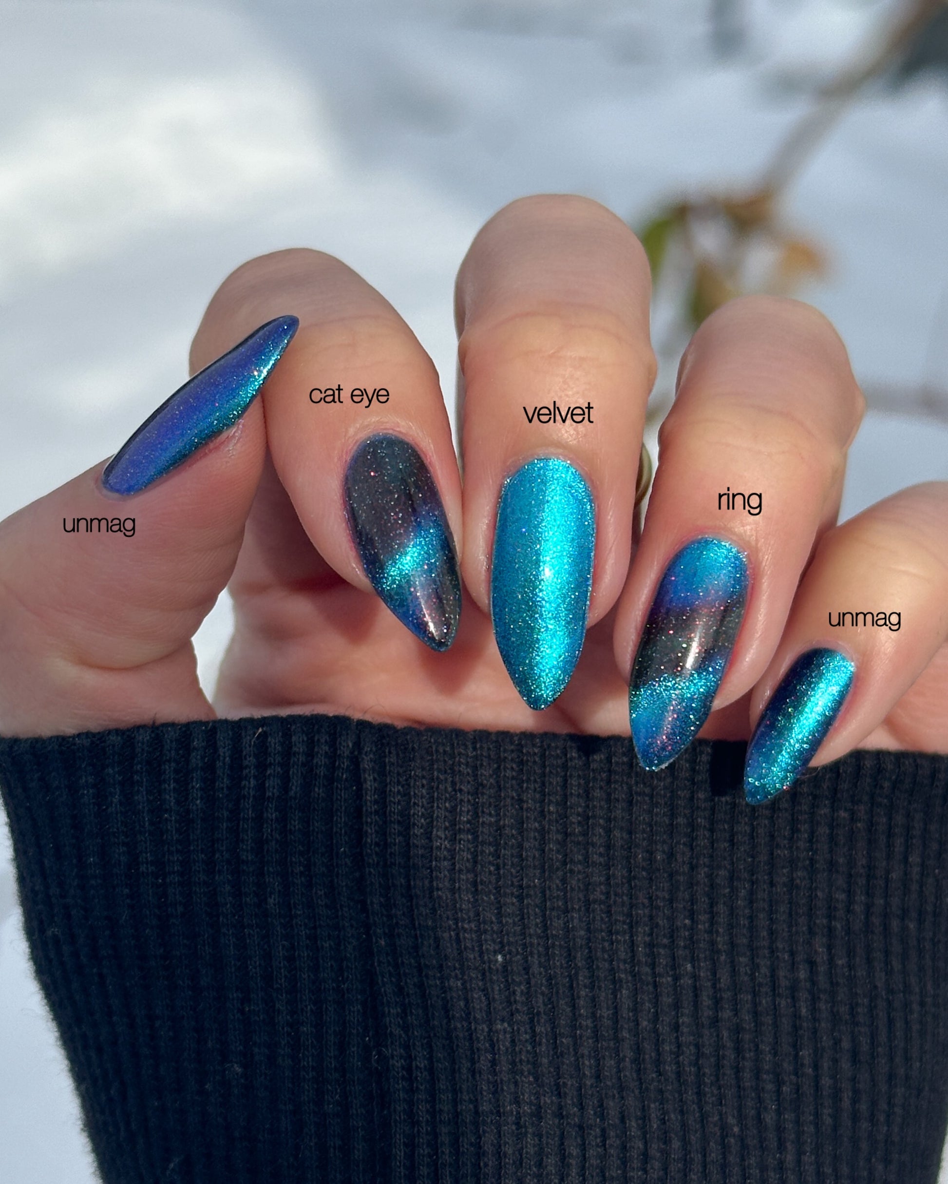 Eye-catching in both velvet and cat eye effects. Full coverage in 2-3 coats.