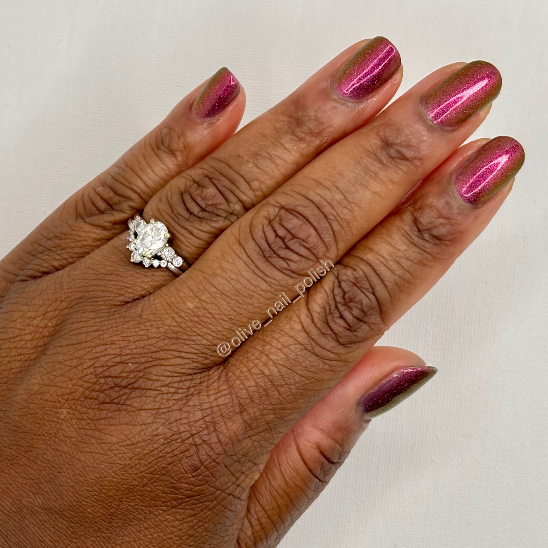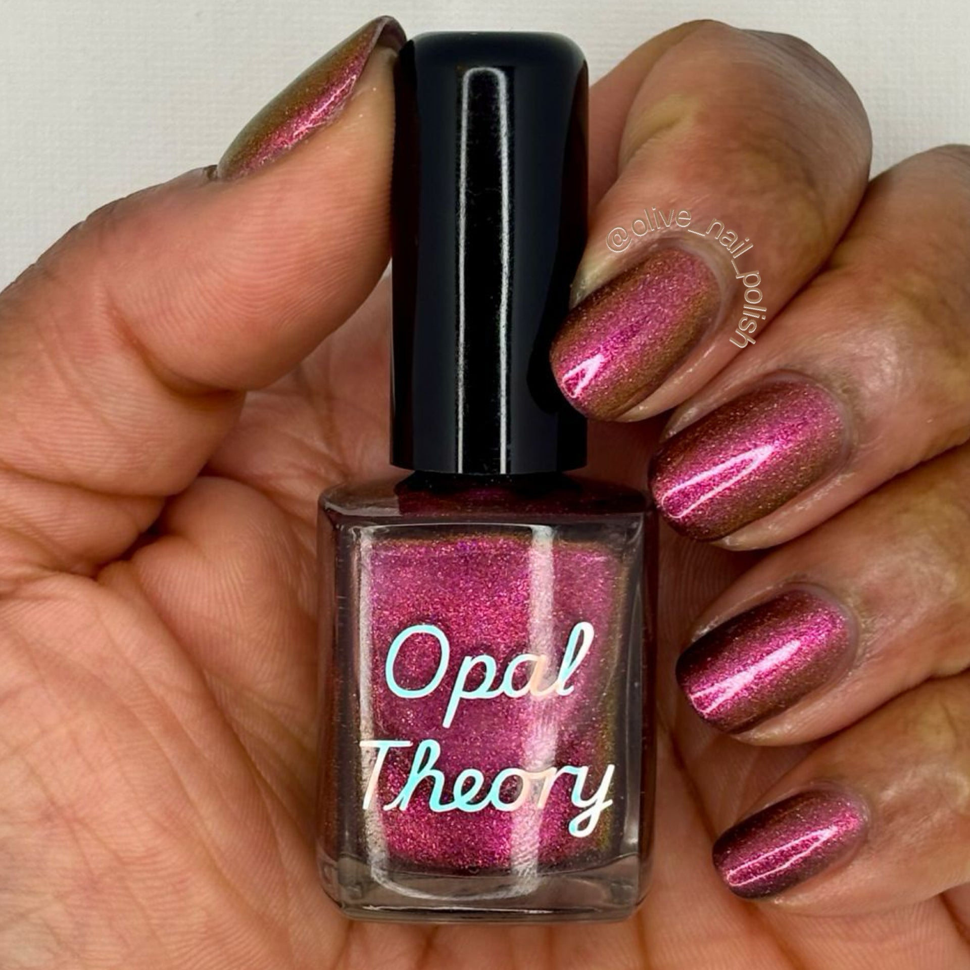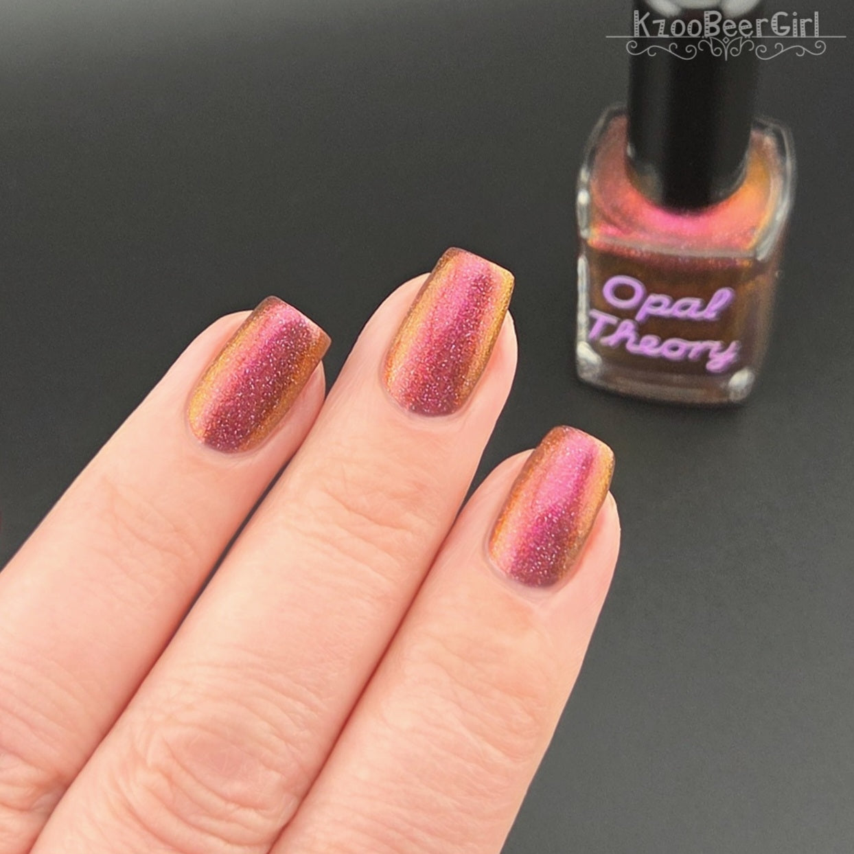 Embers is a blackened dark red jelly with red-to-orange shifting shimmer and scattered holographic glitter. It's like a sunset you can wear on your fingertips. Perfect for autumn.
