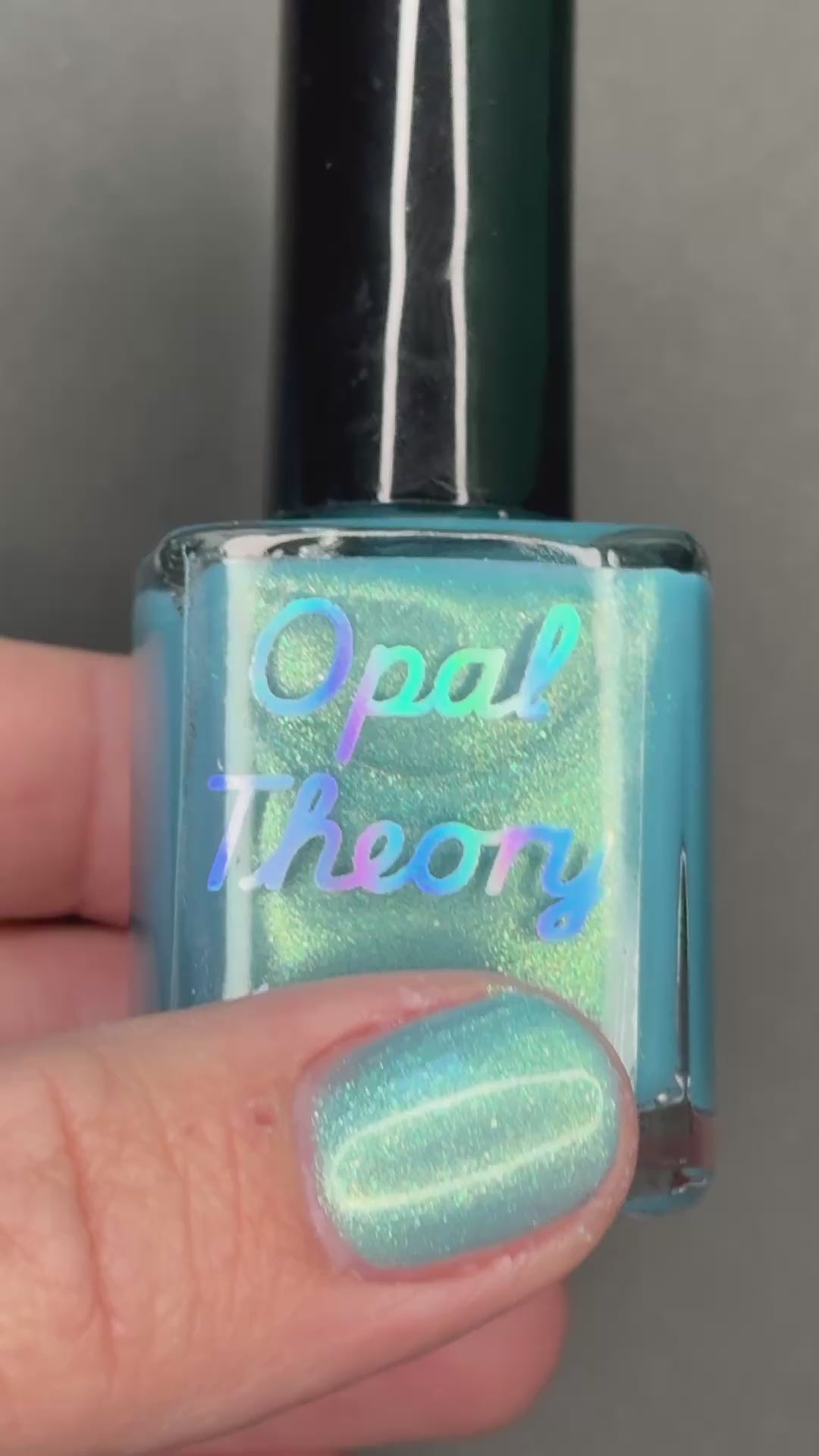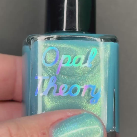 Waterfall Climb is a seafoam green pearlescent polish with gold, blue, and turquoise shimmer.